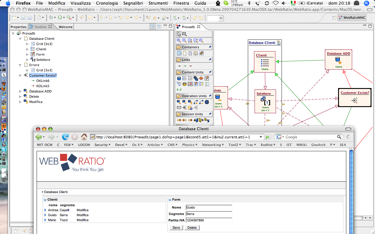 Quello che vedete riportato è un tool su cui ho appena finito di smanettare. Sembra un innocuo tool di design e invece… e invece è il riassunto di anni di ricerca e sviluppo, è il succo delle notti insonni di svariati programmatori. Voi “disegnate”, ascoltate il cliente, ridisegnate, riascoltate il cliente… e alla fine gli “generate” l’intero applicativo; con tanto di diagrammi, documentazione, vincoli sul db, grafica, autenticazione utente e controlli sui form.