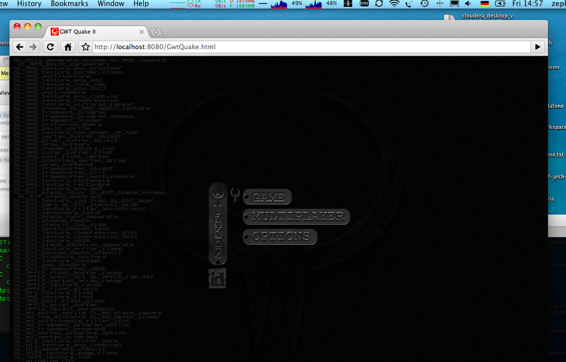 grinder:workspace zeph$ hg clone https://quake2-gwt-port.googlecode.com/hg/ quake2-gwt-port requesting all changes adding changesets adding manifests adding file changes added 11 changesets with 702 changes to 444 files updating to branch default 442 files updated, 0 files merged, 0 files removed, 0 files unresolved